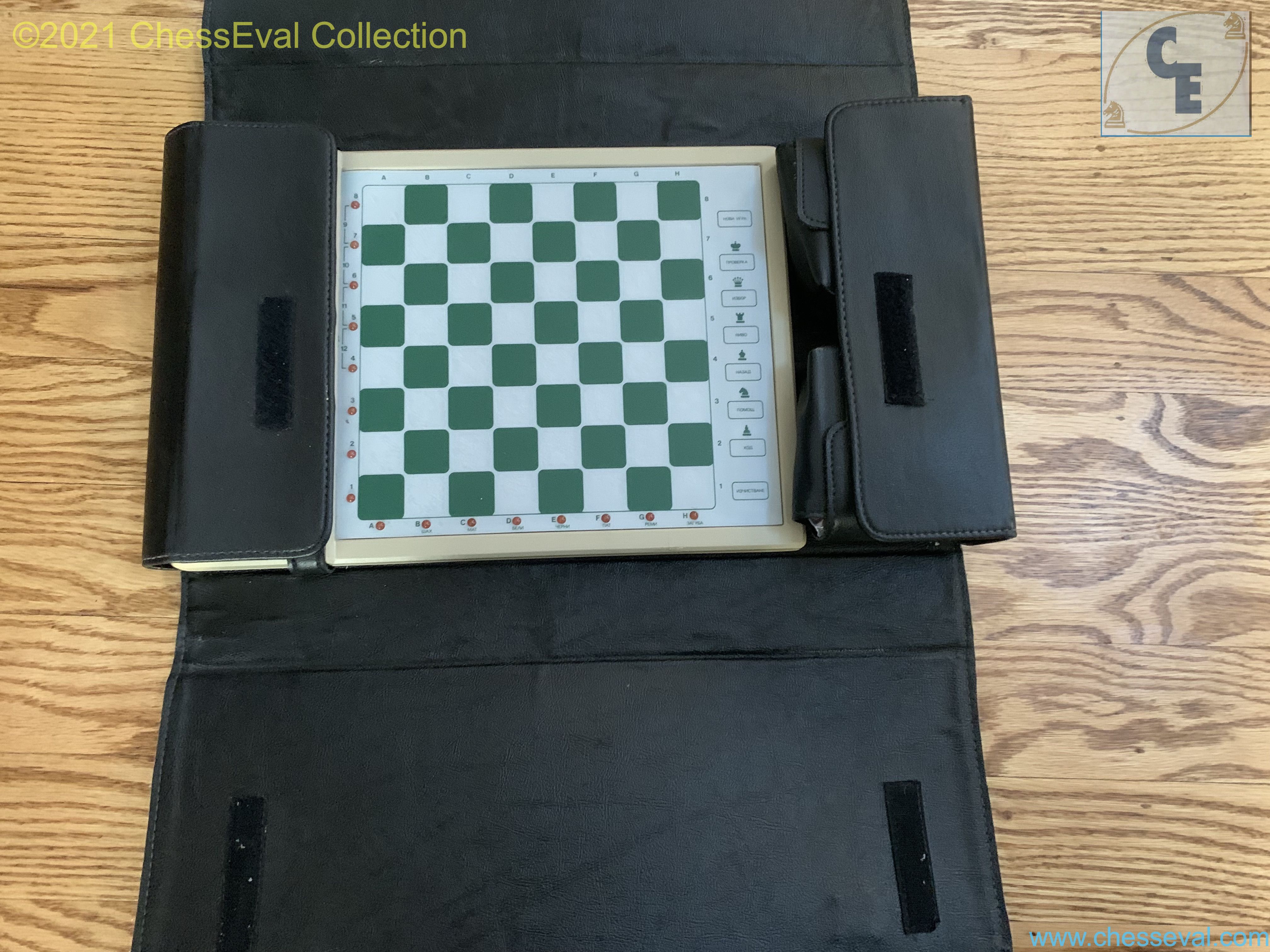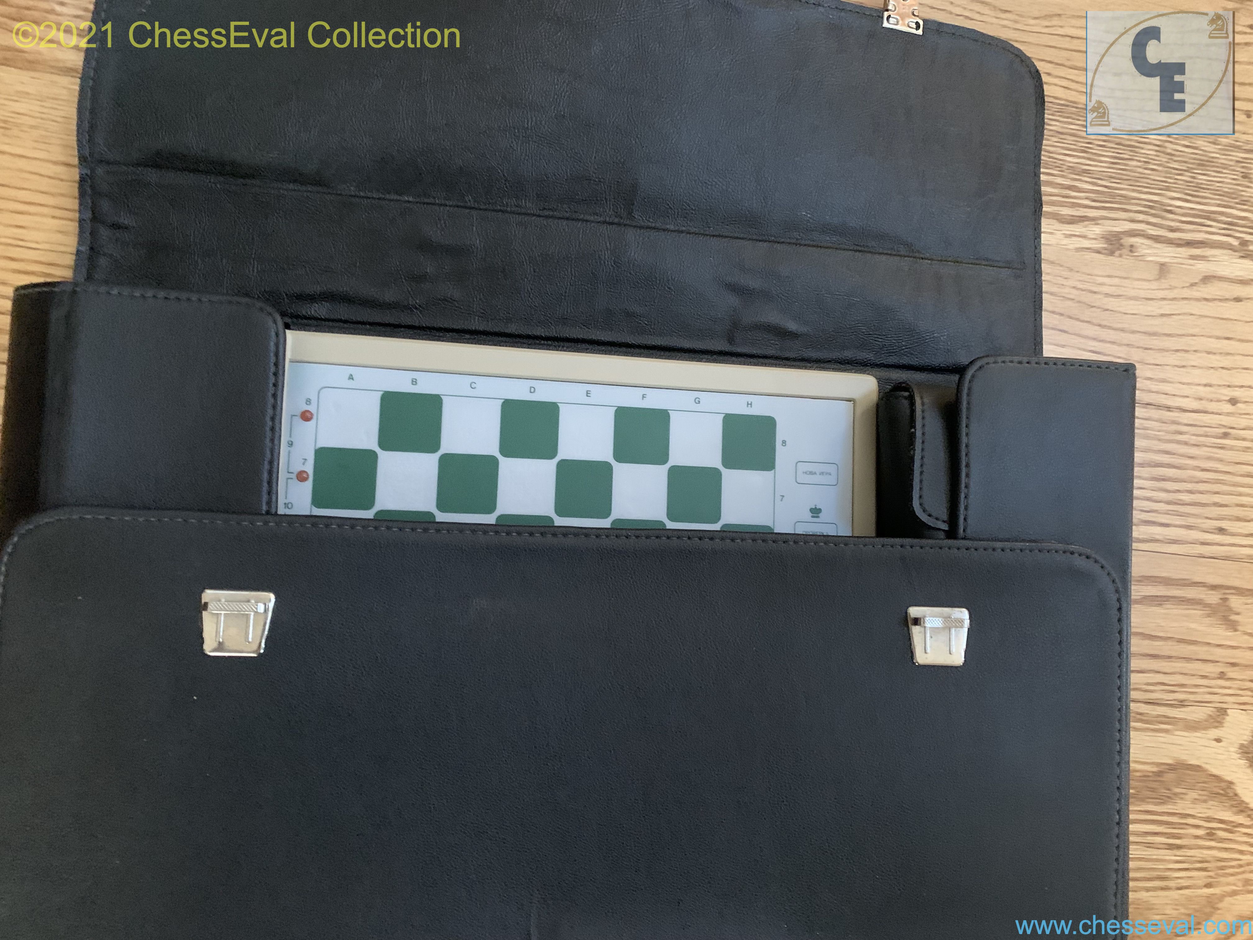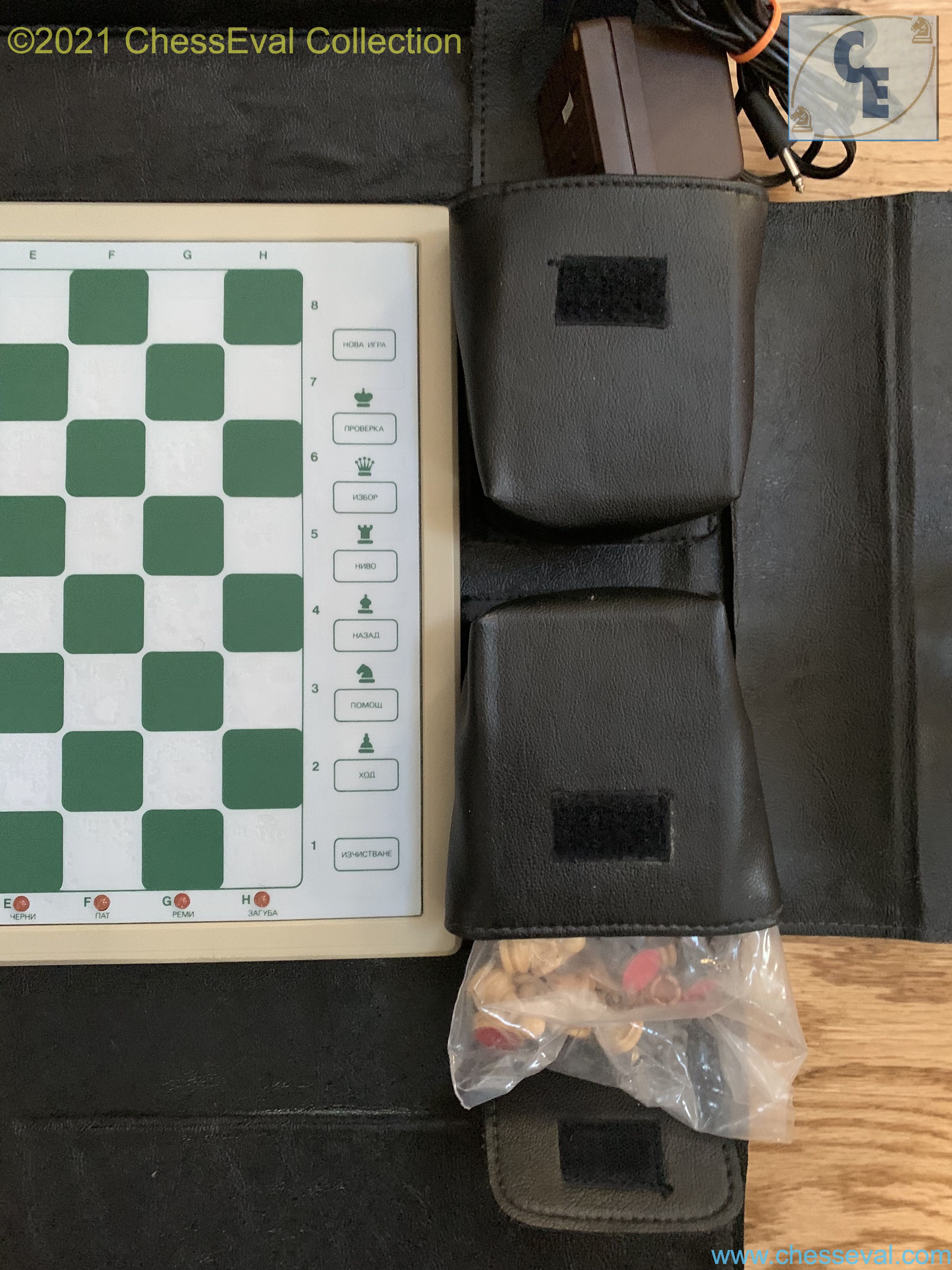 With its case very well designed, the lateral pockets for the power plug and the chessmen, its attach to secure the transport, this computer is impressive by its appearance of robustness.