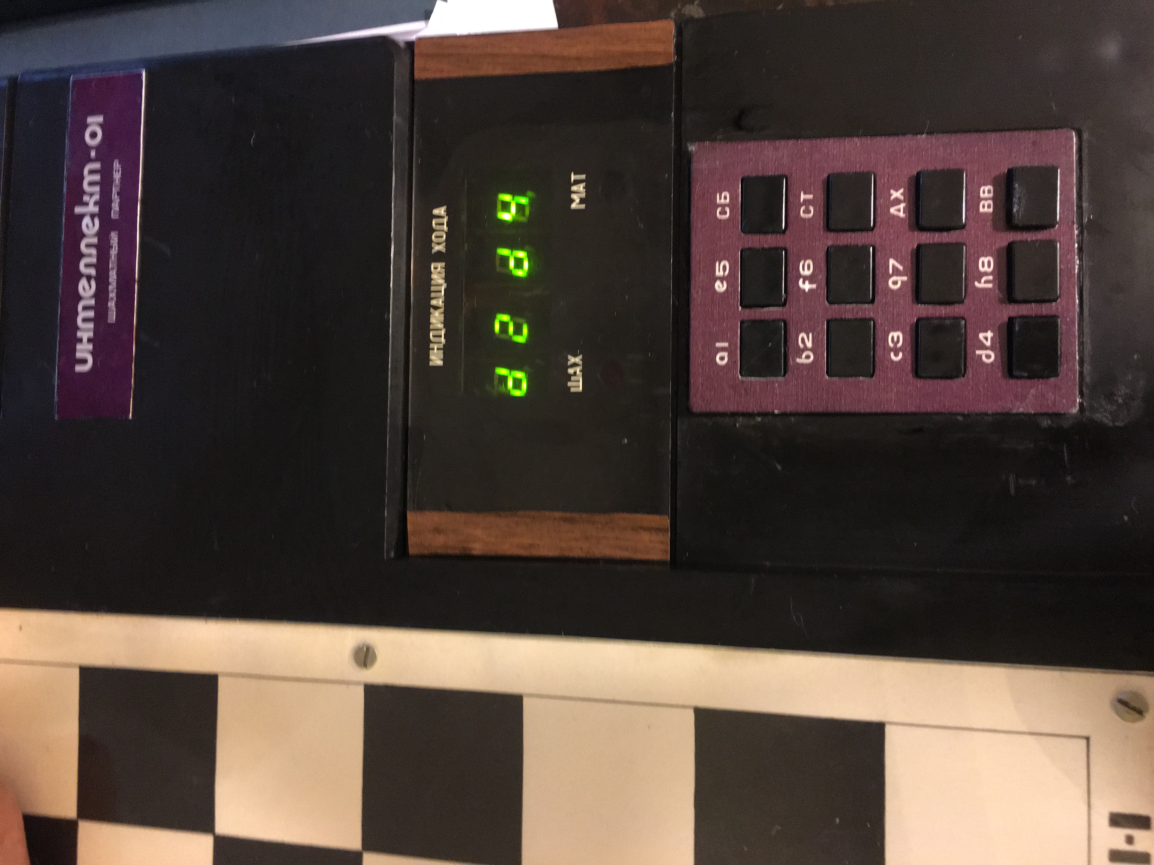 The interesting point is that it seems that the Intellect-01 was running an original Russian program by Y. Kubinov. This computer was participating to the First Soviet Computer Championship in 1988: http://chessprogramming.wikispaces.com/ ... nship+1988