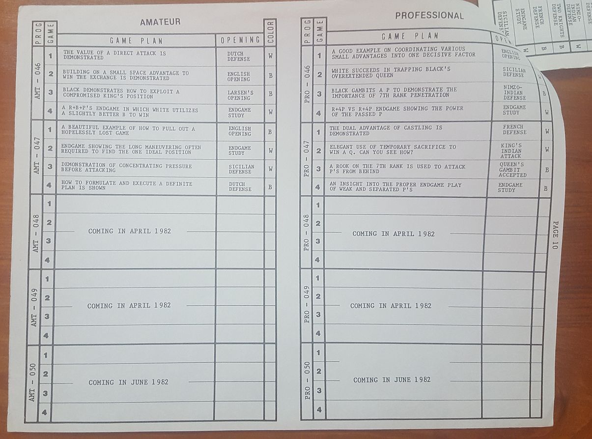 The bad news is that in 1982 / 1983 Cyber Chess was probably in decline (losing market share to dedicated units and chess software for microcomputers), which means the production runs of packs number 50 and above was probably low.